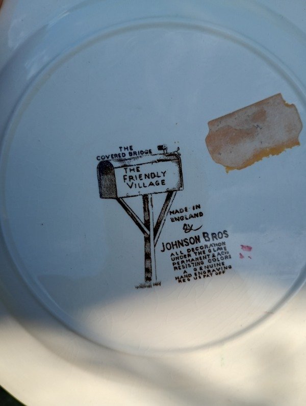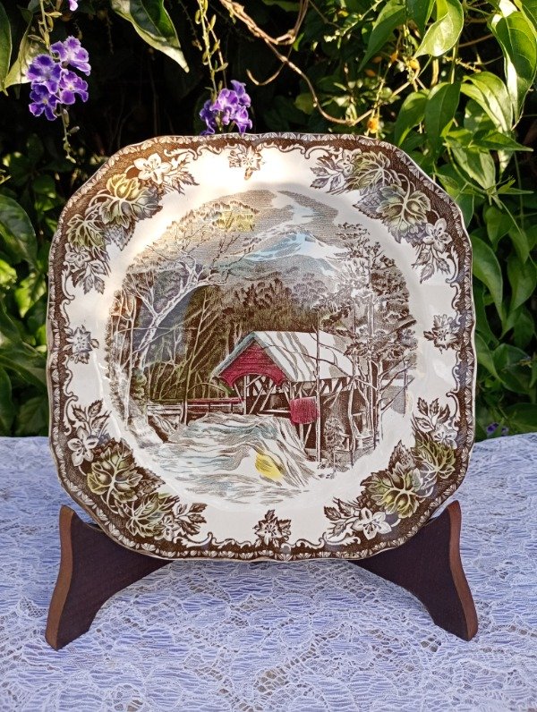 Plato de entrada o postre loza inglesa The Friendly Village The Covered Bridge