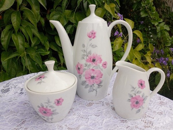 Incluye cafetera, azucarera, lechera y 6 dúos de café.
